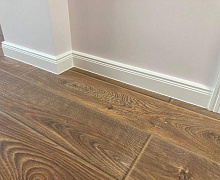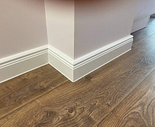 Немецкий плинтус Дёллькен из ХДФ на древесноволокнистой основе перекроет зазор между стеной и полом до 18мм.