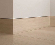 Особенности монтажа: Уложите ламинат так, чтобы его край заходил под будущий профиль, но не упирался в стену. Нанесите «жидкие гвозди» зигзагом на тыльную сторону профиля. Приклейте профиль к ровной стене прямо поверх ламината. Заштукатурьте верхнюю кромку профиля, чтобы она слилась со стеной. Зашпаклюйте и покрасьте стену как обычно.