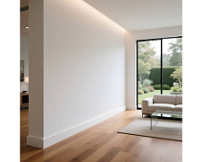 Белый плинтус из UHD Polymer. Длина 2000 мм. Высота 80 мм. Ширина 13 мм.