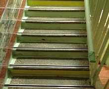Способ монтажа: алюминиевый порожек без вставки крепится в проем между двумя напольными покрытиями или на ступени при помощи саморезов (идут в комплекте). Затем прорезиненную ПВХ вставку нужно нагреть строительным или обычным феном, либо подержать в горячей воде, чтобы материал стал мягче и легче вошел в паз профиля.